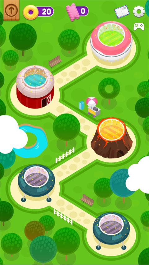 1、下载进入疯狂甜甜圈游戏,这里有非常多的关卡可进行挑战;
