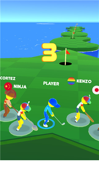 2、与其他真实玩家进行对战,将球打进洞后即可前往下一个关卡