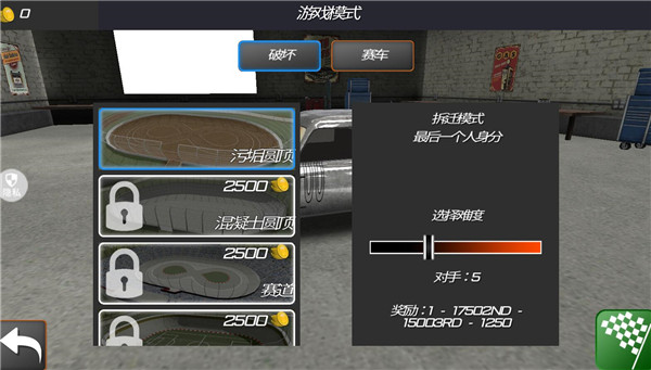 2、选择好游戏模式,是破坏还是赛车以及游戏难度和游戏地点