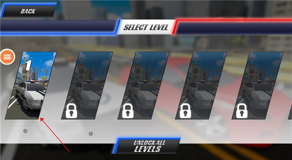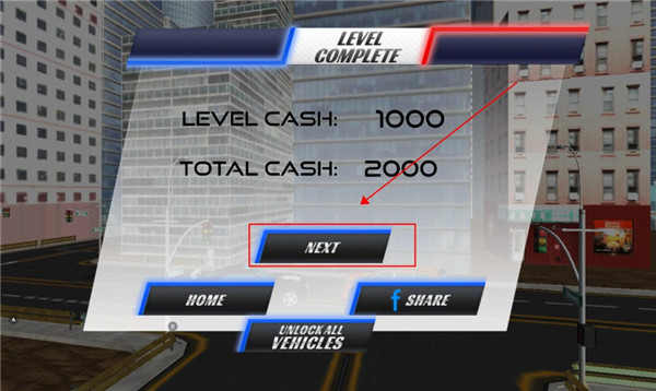 7、我们找到罪犯的车辆后追上并撞击他即可抓捕,抓捕后即可获得关卡的胜利,我们可以点击此处进入下一关