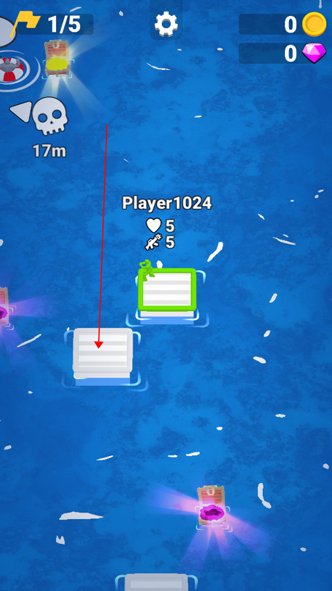 3、用你的木筏碰到灰色的中立板块即可扩展你的木筏范围,并且增加你的队伍容量