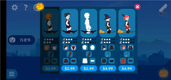 6、点击主界面的南瓜头按钮,我们可以购买不同的滑板角色;