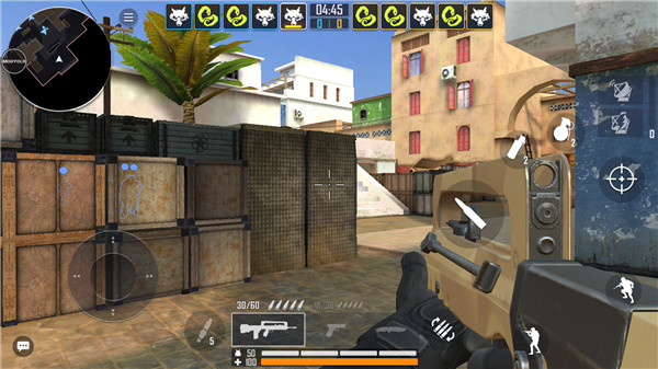 5、游戏内共设置了多种不同的模式供玩家选择,游戏的操作方式比较简单,通过滑动左侧的摇杆可以控制角色移动,右侧则是攻击键以及各种功能键,包括投掷物,瞄准镜以及其他功能