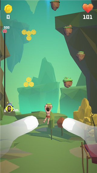 抓紧浮石:观察上方浮石的位置,如果浮石在右上方出现,点击屏幕右边任意位置向上前进,石头在左上方,