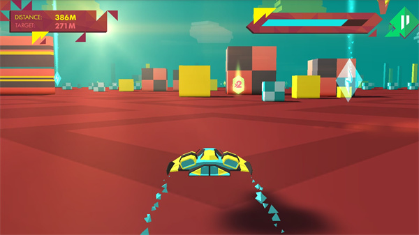 2、中途会有很多的方块阻挡飞机,小心避开,后期还会出现滚动的方块小心驾驶,点击屏幕时间不要过长,否则飞机会来不及返回;