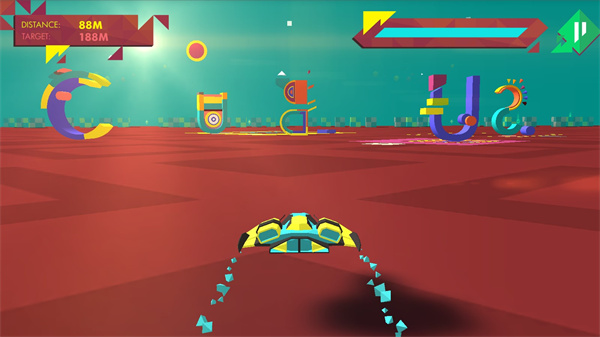 几何飞行游戏是一款时下非常火爆的竞速类游戏,在这个布满几何图案的抽象世界,玩家将驾驶着一辆私人飞机,在几何的世界中自由翱翔,在保证生存的前提下,需要躲避迎面而来的各种障碍,还要注意收集沿途的各类资源,是本作的主要玩法。并且几何飞行游戏操作虽然简单,但是难度相信只有玩过的朋友才明白,因为游戏在难度的设计上十分的有意思,它就如同积木一般被摆放的几何物体相互平凑成一个四通八达的空间,缝隙的大小决定了玩家前进的路线,于是如何能够通过成为了思考的主要问题,稍不注意,可能就会被与地板连为一体的障碍敲的粉碎。不仅如此,游戏内有着大量的主题可以解锁,不过想要解锁下一个主题,需要玩家通过前面那个才可以进行解锁,每一个主题的背景都非常具有特色。另外,几何飞行官方版最大的一个亮点可能就是游戏的背景音乐了,动感的旋律随着玩家的失败戛然而止,强烈的意犹未尽的感觉立刻涌上心头,催使你继续游戏,一首好听的旋律,也可以成为我们无论如何都要继续下去的原因,戴上耳机能让你抖上一整天,如此简单有趣的游戏,你确定不来上一把?
