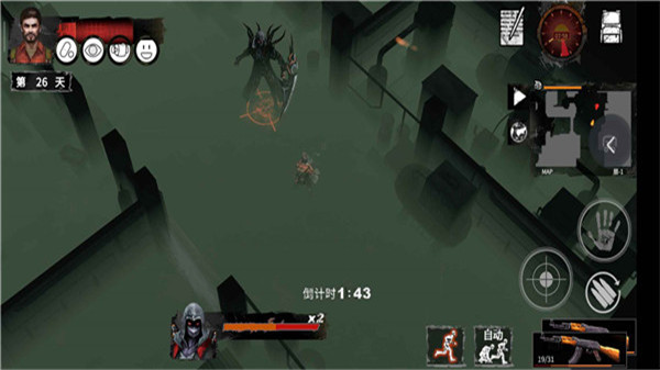 2、体力:体力为零时玩家战死。体力只有被攻击时才会流失,脱离战斗则自恢复。制造的攻击道具则可以更快击杀僵尸,也间接影响体力流失。