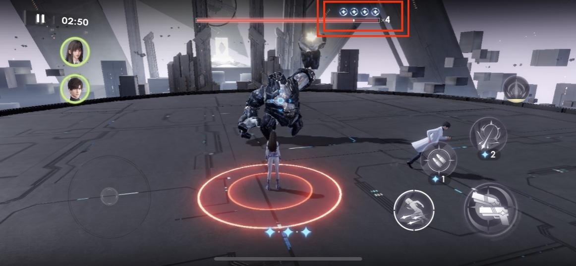 1、有些怪物拥有【芯核护盾】,即怪物血条右上角蓝色的小圆点(图片中双红框标出来的位置),在芯核护盾保护下的怪物会获得大量减伤。共鸣技可以消耗一格【芯核护盾】。