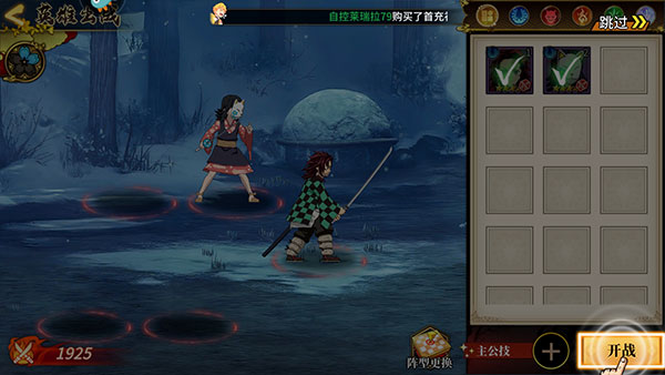4、我们招募的角色可疑在右侧卡槽出现,勾选后点击“开战”安排上阵。