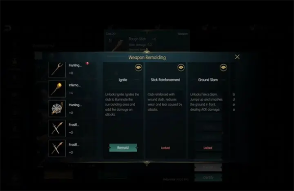 让我们以 Rough Stick 为例,通过重塑它,你可以提高它的基本伤害点数,它的生命值、力量和体质在你使用它时给你。