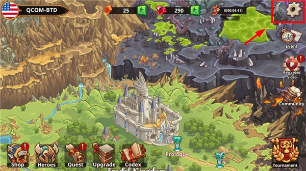 1、下载并安装本站提供的战国争霸2最新版,打开进入游戏点击右上角设置按钮