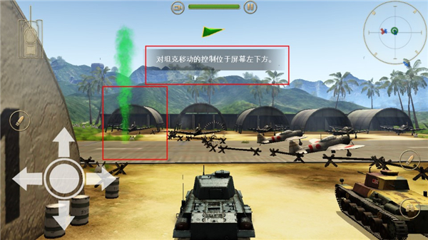 1、玩家在游戏中通过左屏幕的虚拟摇杆来控制坦克的前进后退,这里要注意的是,坦克的行动与坦克自身的能力数值以及地形有着非常密切的关系,坦克在转向、后退时都相应会有一定的黏滞。坦克在行动的过程可以进行射击,但精度较低,玩家可以通过右边的按键进入瞄准模式,通过在屏幕上滑动来瞄准。