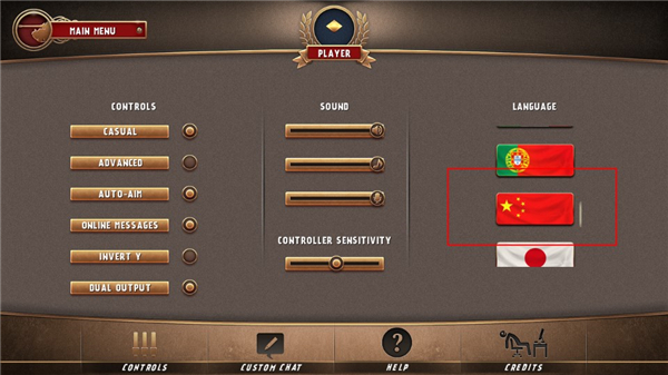 2、进入页面后,玩家在右侧找到中国国旗即可设置游戏为中文内容。