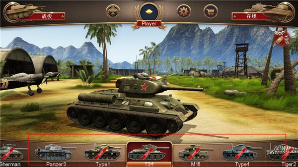 1、在本站下载安装并打开游戏,进入游戏页面,下方为玩家准备了很多不停类型的坦克,玩家可以自由选择。