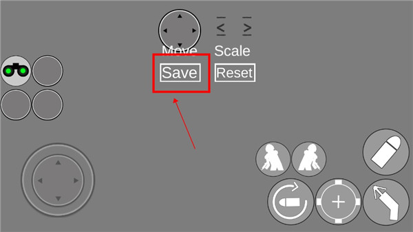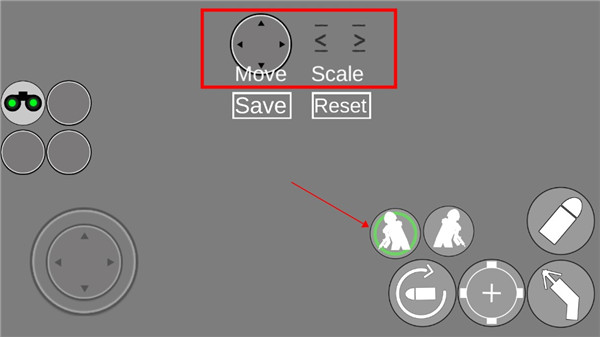 3、进入后,点击一个操作图标,显示绿圈则代表被选中,之后选择上方的按钮即可更改,轮盘控制位置,箭头控制图标大小。