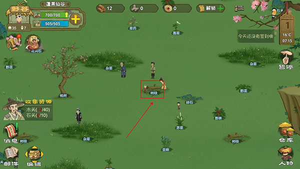 1、比如采集树枝。点击树枝。