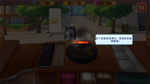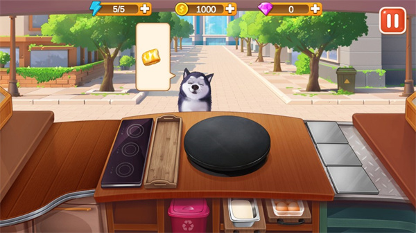 4、图中那只如吉祥物一般的哈士奇,它不仅是小店的第一位“客人”,还是能够听懂人语的神奇狗子,这里我们需要为它做一份煎饼;