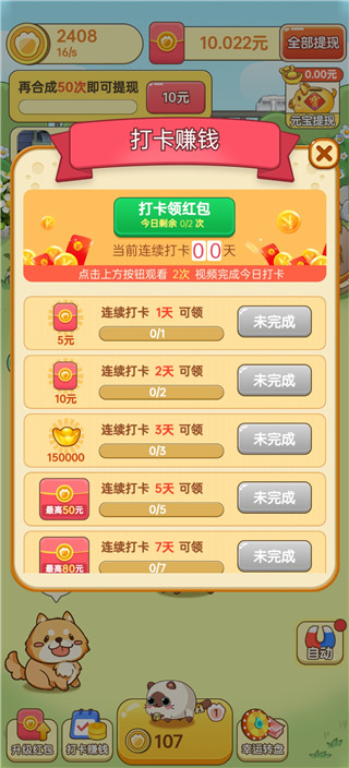 2、每合成一个新猫咪,均可获得1~3元随机红包