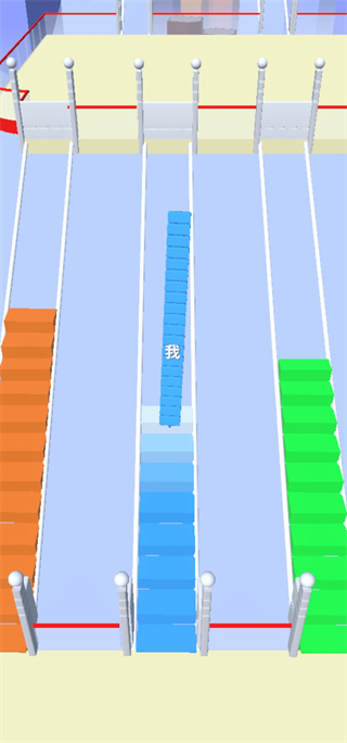 搬砖争霸赛游戏中玩家将变身成搬砖达人,这里有多个不同颜色的砖块,玩家需要搬指定颜色的砖块,然后一层一层的往上塔,直到爬到最上一层,前期一共有三层,每当我们爬上一层都会有砖块要搬,不过只要是第一个上去的话,就只有我们这一种颜色,所以最重要的就是搬砖的速度要快。