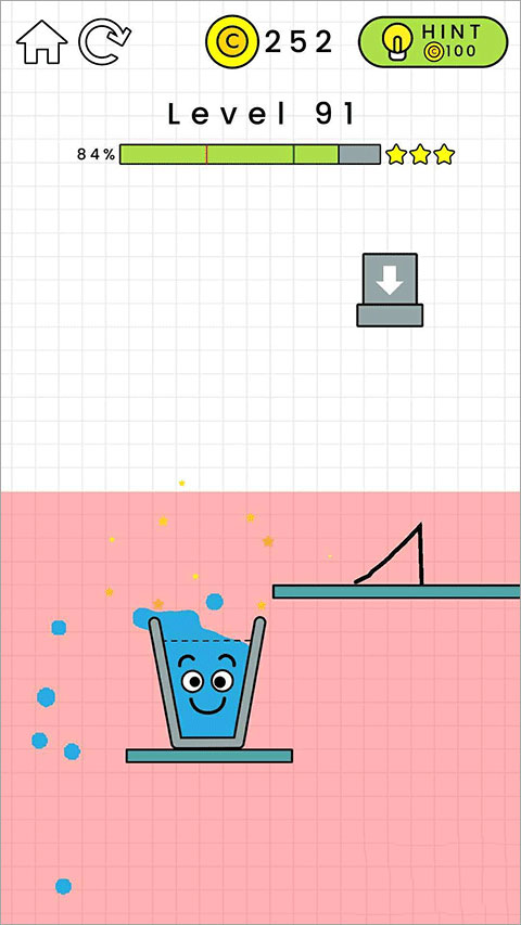3、丰富多样的游戏关卡,拿起你的画笔,画出一条正确路线,为水珠引路到达杯子里面。