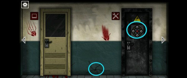 16、出了停尸房来到右边的房间,先拿走桌子上「锤子」,然后用钥匙打开门并进入。观察尸体胸口上的伤痕获得密码「1635」,接着用解剖刀割开肚子上的线获得「金属盘」。