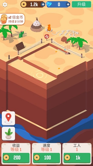 4、升级收益,增加金币数量;升级速度,增加工人的工作效率,减少玩家点击屏幕的次数;升级工人,可以增加工人数量。