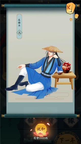 最让我觉得有趣的是那些“知己”技能,每个知己都有不同的作用,有的能帮你除情绪波动,有的能增加收益,甚至还有概率让你一夜暴富!不过有些技能看着强力,实际用起来可能有点鸡肋,得看你的玩法风格。比如花魁这个角色,如果能顺利娶到她,胭脂单价直接起飞,轻松赚大钱。