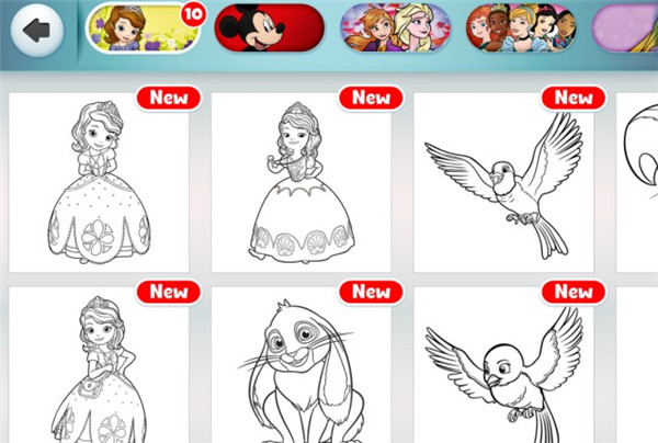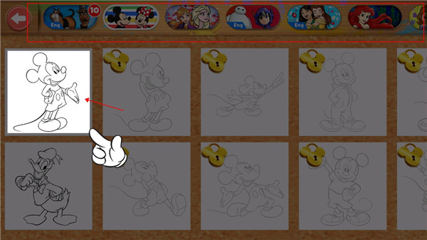 2、包含数十个著名的迪斯尼经典人物,提供1000多种绘图纸进行着色,并提供多种着色工具供您选择。