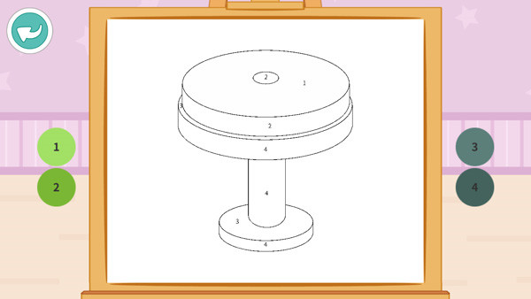 3、点击一个虚线图形,玩家需根据数字填入相应的颜色。