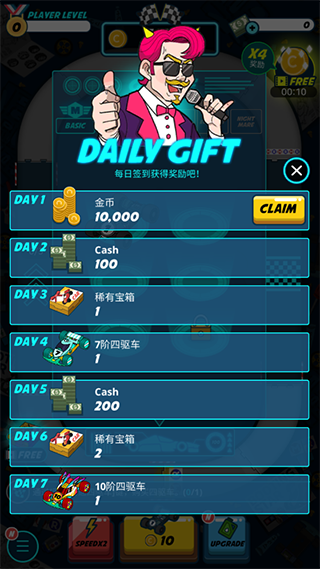 2、将四驱车拖动到跑道上,车辆就会开始循环跑圈了,每跑一圈还会获得金币