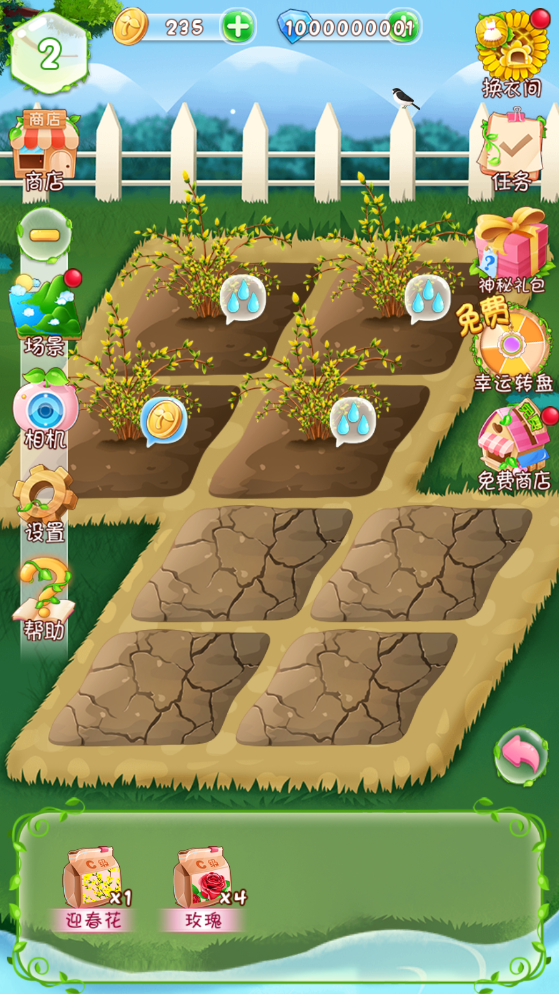 3、给植物浇水,点击金币即可获得金币,由于给大家分享的是花花姑娘之魔法花园破解版,所以玩家可以随意升级。