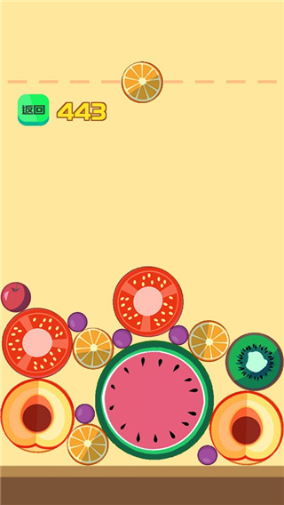 3、不同的水果掉落,你的目标就是将相同的水果合并,赢得多多的奖励,打发无聊的时间。