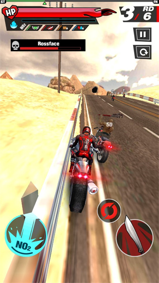 《狂暴摩托》是一款结合了赛车和格斗元素的游戏,玩法刺激又充满乐趣。玩家可以骑着炫酷的摩托车,在3D世界里飞驰,还能用各种武器攻击对手,比如棍棒、枪械甚至死神镰刀!游戏操作简单,通过重力感应就能轻松掌控方向盘,左边加速,右边攻击,简直是单手操作党福音。