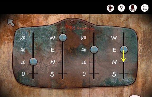 2、到达灯塔2楼,注意:左边墙上的纸里面的内容有了变化。依然是是开门的线索,但是已经变成了另外一扇门的。之后前往3楼,得到一把铁锹;之后下楼出门前往工厂,进入后捡起地上的铁球,此时可以发现左边的地上多了一个盒子(之后回来再处理)。