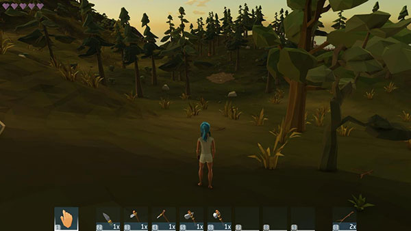 2、而在屏幕的左上角的小红心就是玩家的血量,总共5个血,当没有装备面对一只狼豹等肉食生物的攻击时,血量会迅速下降,所以前期要避开主动进攻的生物。艾兰岛添加了温度、饱食度等设定。这也就意味着当人物饥饿、寒冷时会持续缓慢掉血,总而言之,生存环境不合适的话,掉血是比较迅速的,所以玩家要尽快给自己组建起一个可以生存的空间。