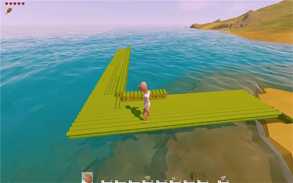 码头的作用主要是给玩家在海洋上提供一个活动平台,通过码头来登录到自己的小船上。制作起来可以一切从简(你也可以按自己的喜好来大开脑洞),收集“竹棍”制作各种模块在岸边慢慢拼接起来就可以。一定要注意,为了防止小船制作出来后“搁浅”,一定要尽量远离岸边。