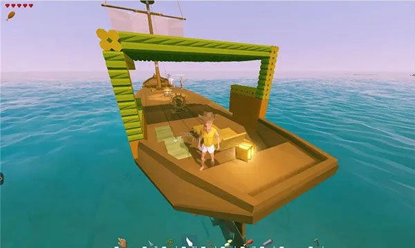 通过前期的材料收集,竹棍以及原木都都可以被用来加工成“各种箱子容器”以及“模块组件”。将容器中放满所需食物,例如烤肉、香蕉、菠萝、蔬菜汤等等(这些内容就需要各位岛主自己细心烹饪和种植了)。如果想吃更丰富的食物,你可以收集“竹棍”进一步加工后制作“吊杆”来钓鱼,或者在船体某部搭建一个火盆,将肉类食物烤熟食用。使用模块组件在船体上简易的搭建出墙面以及房顶,遮风挡雨使用。最后,将自己以及小伙伴的床铺做好,你就可以准备开始一场远行啦!制作一艘可以航行的简易小船并不难,只要你有耐心收集材料以及制作工具就可以了。但是呢,简易的小船只具备了最基础的航行能力,想要在海上生存成为一方霸主,就要看各位岛主脑洞大开的想象力如何去丰富自己的小船啦。