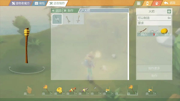制作火把的材料和流程非常简单,小伙伴们只需要准备1根木棍、1条任意绳子以及1个树脂即可轻松制作合成。