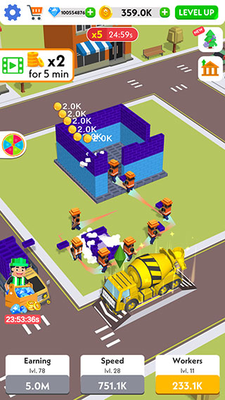 建筑大亨3d官方版(Idle Construction 3D)是一款有着3D卡通风格的休闲放置类手游,该游戏的玩法轻松简单,随着时间的推移进行点击获得更多的资源去慢慢的发展自己的建筑即可。但就是这样一款简单的游戏,却有着非常真实的模拟建筑玩法,你可以在游戏中使用空闲的时间进行管理,直到你赚足了钱并建立起一个庞大的建筑帝国,之后你就可以提高您的业务并收集最伟大的地标性建筑!这些地标建筑都通过闲置和答题器游戏从其他城市建设者游戏中查看。而除了地标建筑之外,你还可以在建筑大亨3D游戏中建造办公室、房屋、学校等常见的生活建筑,你只需要通过提升员工及其工作速度来扩大您的区域,即可逐步解锁这些建筑。并且在闲置的建筑大亨业务中,您还可以建立自己的建筑公司。放心,公司不会随着某一栋建筑的完工而解散。它会随着进度的提升而保留所有的升级和强化。以便在你开展新的建筑项目时能够第一时间开工。当然,如果你想要在在建筑大亨3D游戏中成为具有里程碑意义的建筑大亨,那你就需要及时扩大您的库存,以在镇上建造一座新建筑物,为您带来最大的利润。或者增加到新的城镇建设,通过获得具有挑战性的建筑业务来扩大您的房子!这时候如果在您的镇上建造建筑物,就能轻易地发展您的房地产业务,以便通过这种方式来赚取大量的金钱。喜欢的小伙伴快来下载试试吧!