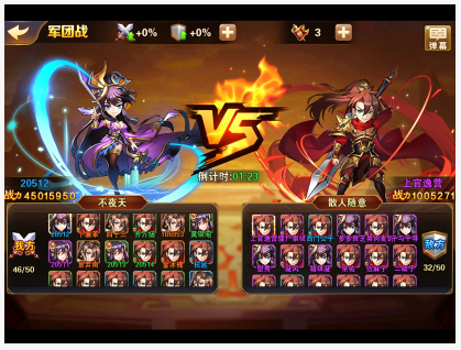2、倒计时结束后将锁定双方上场的阵容,并自动开始战斗。一旦战前动员时间结束,未能按时集结的军团成员将不能进入战斗,参战的成员则只能以寡敌众。这里对于军团长的统筹组织和军团成员的执行力都是一个检验,军团长要审时度势,衡量不同战场上对手的实力对比,来决定是全力拼下两城还是集中优势兵力确保一城在手。而团队成员则要根据军团长的要求迅速集结在目标城市,保证己方力量被纳入到对战序列。