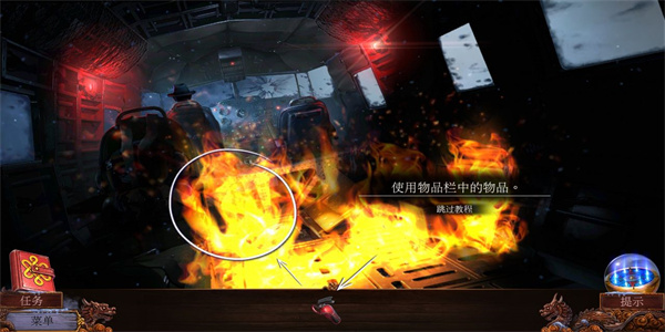 6、点击图片中的道具可以拾取,然后使用物品栏中共的物品灭火器就可以将火全部熄灭;