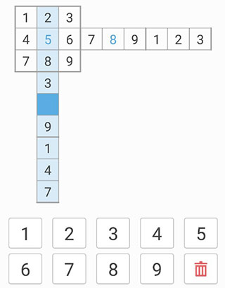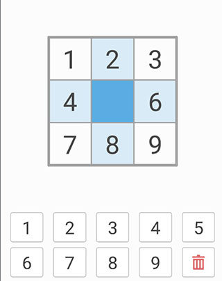 2、在九宫格中,填入一个数字,要求不能与其所在九宫格的其他数字相同。