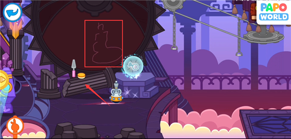 8、紧接着进行向右边移动场景,点击箭头所指示的物品,并在上方画出该图像获得奖励;
