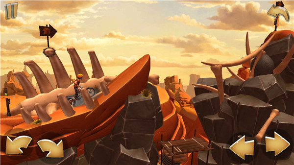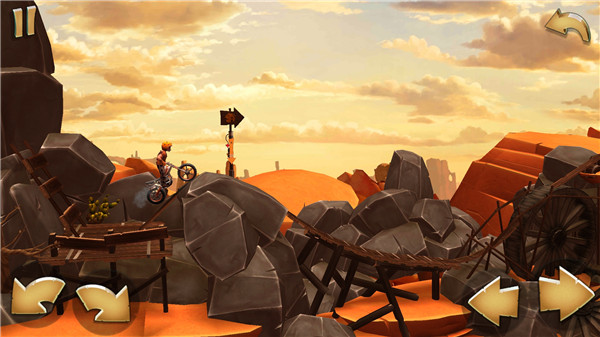 1、操作这是一款横版摩托车竞速游戏,游戏在操作上并不是重力感应,而是虚拟按键,操作手法上可能稍显普通,但是玩起来还是非常的有趣,屏幕下方有四个虚拟按键,左下角的两个控制摩托车的重心,右下角的两个按钮控制摩托车的前进与后退。操作非常的简单,玩家可以很快上手。