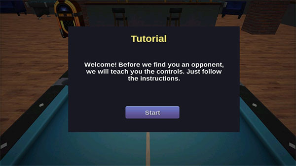 1、进入3d台球游戏手机版,点击“Start”开始,将进入新手引导教程。