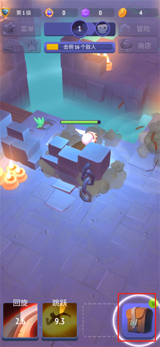 3、游戏右下角还有一个背包,点击进入即可升级装备;