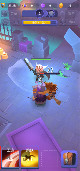 2、游戏中角色会自动寻找敌人攻击,玩家可以点击游戏左下角的技能来帮助角色快速击败敌人;