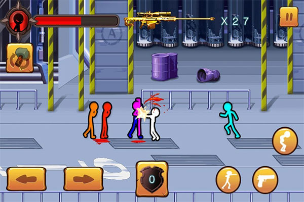 曾经风靡一时的Steam游戏《火柴人大乱斗》相信不少玩家都体验过吧,它凭借着自身经典的火柴人题材、极为真实的打击感以及十分新颖的格斗元素等优势,霎时间吸引了无数玩家的青睐!如今,有关火柴人题材的游戏依旧备受广大玩家们的喜爱,所以为了让大家可以在手机中重温体验这款Steam游戏,小编在此特为大家带来了火柴人大乱斗手机版,该版本是以Steam上的同名游戏为蓝本所移植而来的,所以它不仅沿袭了PC端同名游戏的画面与画风,而且还延续了其一贯的写实格斗感,并且为了让玩家们可以感受不同以往的战斗乐趣,它更是在原有的基础上加入了海量的关卡供玩家挑战,以此来给予玩家最为酣畅淋漓的格斗欢乐!另外,火柴人大乱斗正版手游相较于PC端游戏而言,手机版的玩法操作将更显简单,因为它采用的是虚拟式的按键操作,在这里玩家们只需点击屏幕上的按键,利用基本的重击、重击腿、冲击、踢撞等操作,组合成独属于你的格斗连击,轻轻松松的击败试图阻止你前进的敌人即可。当然啦,在这个过程中,你还会遇到各种各样不同颜色的火柴人角色,比如红色、蓝色、黑色、总数、粉色等等,不同颜色的火柴人它们有着不一样的特效,因为有的会主动进攻,有的则是被动进攻,听起来是不是超级的有意思呢?那还在等什么,不妨前来本站下载畅玩一番吧!