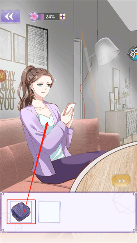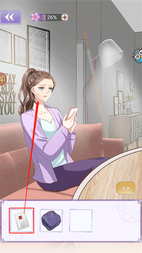 3、再点击衣服穿上,点击切换箭头进入下一场景;
