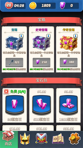 7、在商店还可以购买各种宝箱,这些宝箱需要花费钻石或钥匙进行购买。